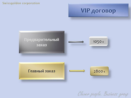 Эксперты Swissgolden рекомендуют оформлять предварительный VIP заказ после первого бонуса Базового договора. Выгодное развитие свого золотого дохода в Бонусной программе Swissgolden.